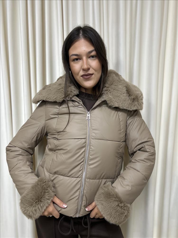 Táto bunda je štýlová, zimná a tepla. Má zapínanie na zips vpredu. Má výrazný, široký golier s huňatou kožušinkou, ktorá sa dá odopnúť a rovnakú huňatú kožušinku aj na koncoch rukávov. Bunda je prešívaná do vodorovných panelov, čo jej dodáva objem a lepšie tepelné vlastnosti. Strih je skôr kratší (do pása), čo pôsobí moderne a šik. Celkovo je to elegantná, no pritom útulná zimná bunda.