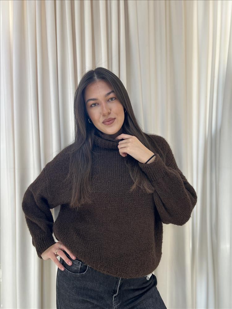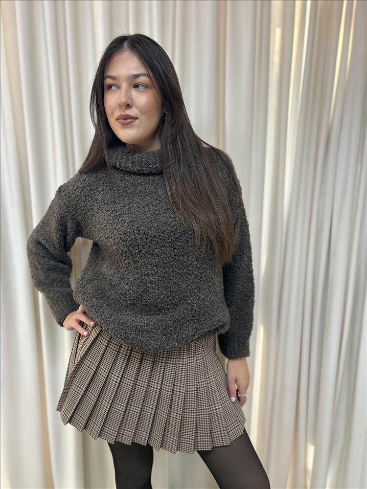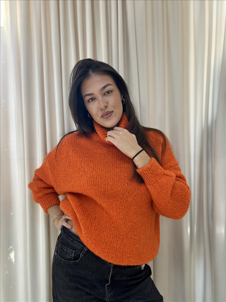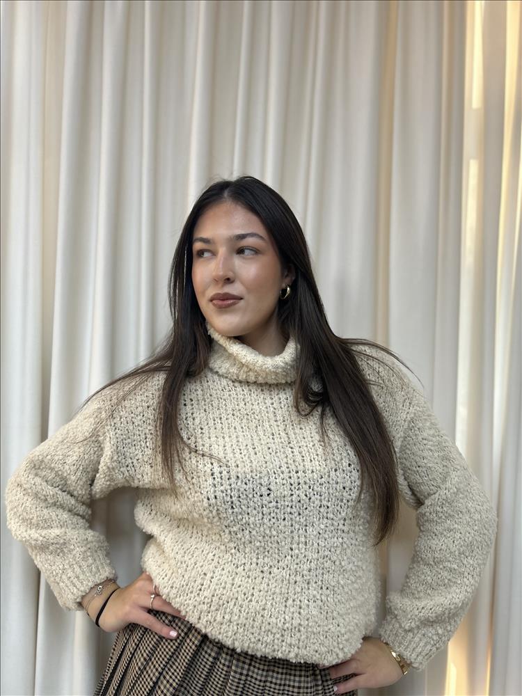 Príjemný pulóvrik s veľkým pohutným rolákom.