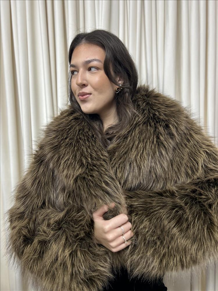 Elegantný dámsky kožuch s výrazným, hustým a mimoriadne jemným vlasom, ktorý pôsobí luxusne a nadčasovo. Kožuch má prirodzený hnedý odtieň s jemnými farebnými prechodmi, ktoré mu dodávajú autentický a exkluzívny vzhľad. Strih je pohodlný a mierne oversize, ideálny na vrstvenie počas chladných dní. Vysoký, objemný golier poskytuje extra teplo a zároveň zvýrazňuje elegantný charakter modelu. Kožuch je príjemný na dotyk, hrejivý a vhodný na každodenné nosenie aj špeciálne príležitosti. Skvelo doplní mestský outfit aj večerný look.