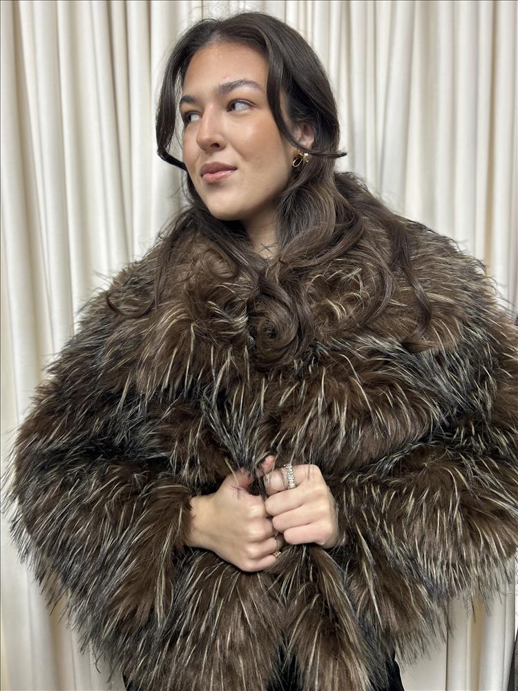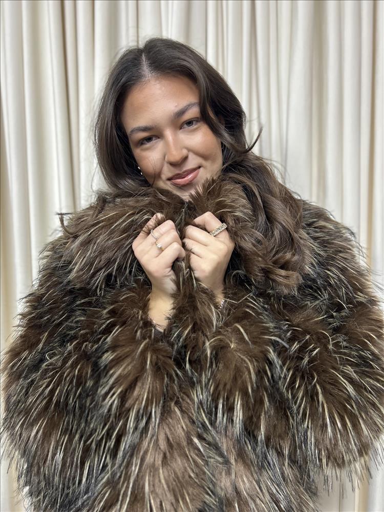 Výrazný dámsky kožuch s mimoriadne hustým, dlhým a hebkým vlasom, ktorý vytvára luxusný objem a elegantný vzhľad. Farebná kombinácia hnedých a jemne melírovaných tónov dodáva kožuchu prirodzenú hĺbku a exkluzívny charakter. Každý detail pôsobí sofistikovane a nadčasovo. Kožuch má pohodlný, mierne oversize strih, ktorý krásne splýva s postavou a zároveň poskytuje maximálny komfort počas chladných dní. Bohatý golier a mäkká štruktúra vlasu umožňujú nosenie aj zapnuté až ku krku, čím vytvára luxusný a hrejivý efekt. Ideálny k elegantným aj mestským outfitom – či už na bežné nosenie alebo výnimočné príležitosti.