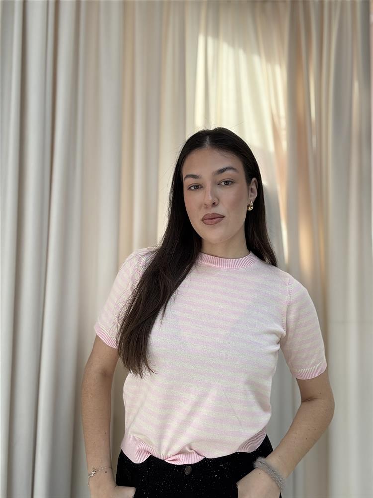 Pulóvrik z príjemného úpletového materiálu s golierom. Pásikový dizajn dodáva modelu štýlový vzhľad, ideálny na každodenné nosenie.