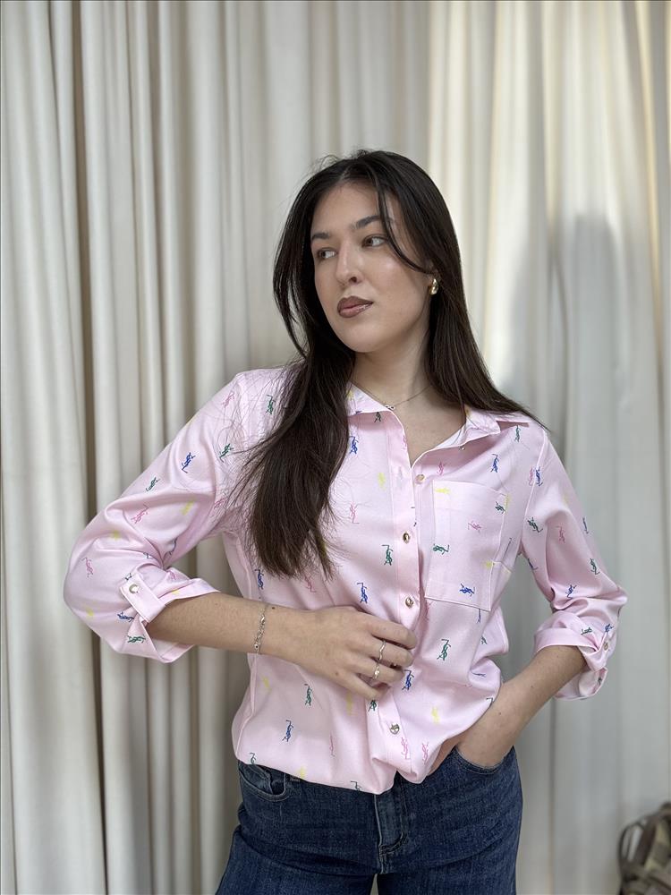 Táto dámska košeľová blúzka v jemnej ružovej farbe zaujme hravým, no zároveň elegantným dizajnom. Celoplošný drobný farebný vzor dodáva modelu sviežosť a originalitu, vďaka čomu sa stane výrazným kúskom každého outfitu. Blúzka má klasický golier, zapínanie na gombíky po celej dĺžke a praktické náprsné vrecko. Dlhé rukávy je možné vyhrnúť a upevniť pomocou gombíka, čo z nej robí univerzálny kúsok vhodný na každodenné nosenie aj do práce. Ľahký a príjemný materiál zabezpečuje komfort počas celého dňa.