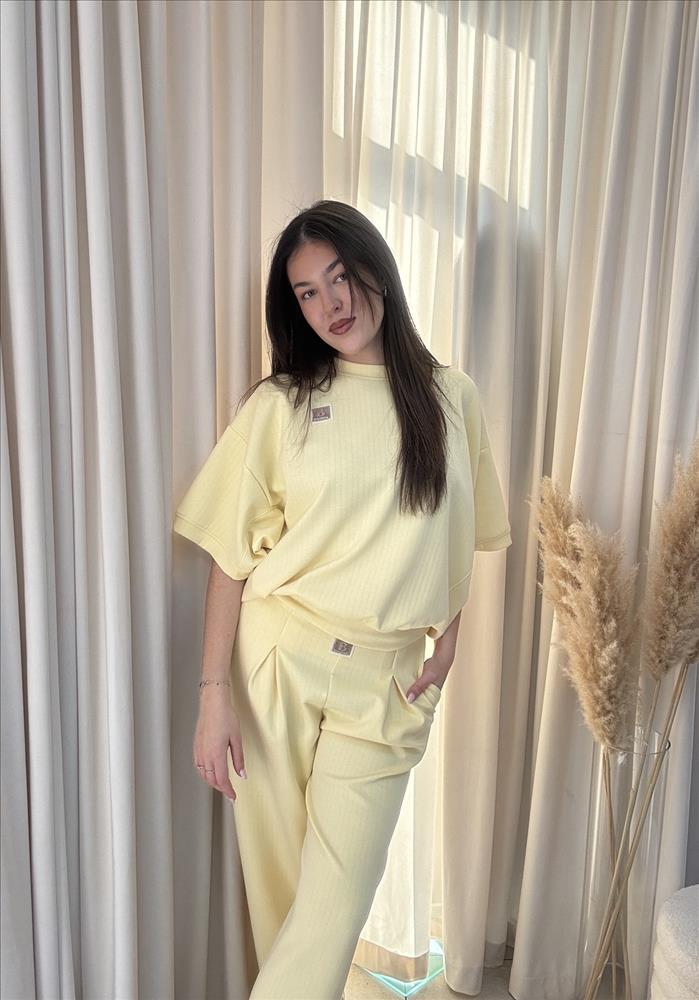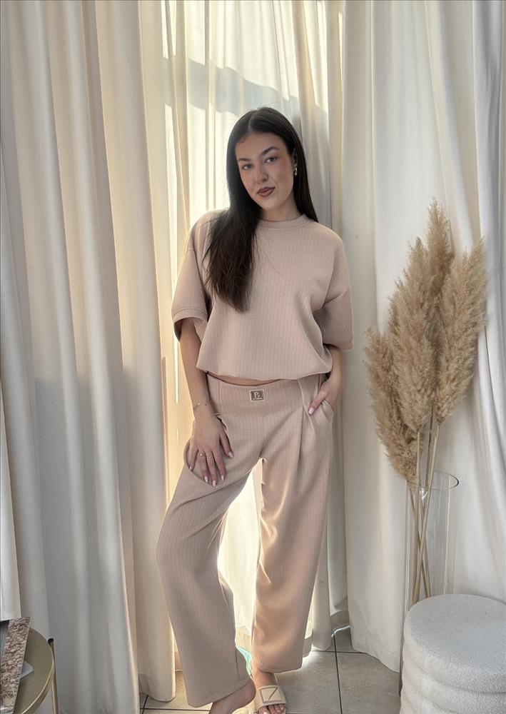 Pohodlný a zároveň štýlový dvojdielny set je ideálnou voľbou na každý deň. Tvorí ho voľnejšie tričko s krátkym rukávom a rovné nohavice s elastickým pásom, ktoré zaručujú maximálne pohodlie pri nosení. Jemne rebrovaný materiál pôsobí moderne a dodáva outfitu štruktúru. Voľný strih vrchného dielu krásne splýva s postavou, zatiaľ čo nohavice s vyšším pásom opticky predĺžia siluetu. Set je ideálny na bežné nosenie, cestovanie aj pohodové dni, keď sa chcete cítiť komfortne, no zároveň upravene.