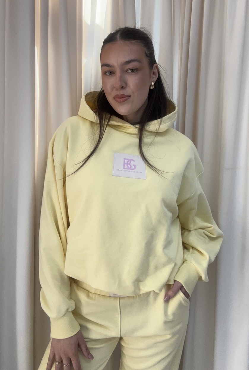 Dámska mikina BG BEBE vyrobená z vysoko kvalitnej bavlny s dodatočnou bavlnenou podšívkou pre bublinkový efekt. Táto mikina s kapucňou má rebrované manžety a ružovú nášivku s logom BG v strede. Mierne nadrozmerná.