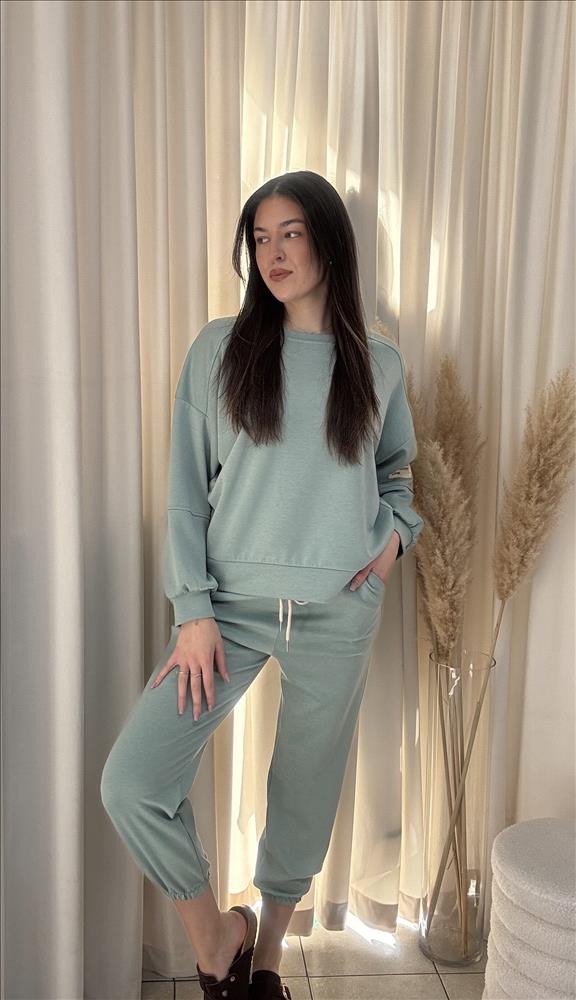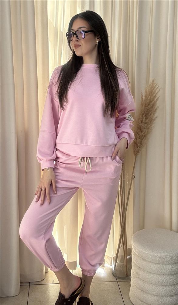 Pohodlný a štýlový dámsky set v minimalistickom dizajne, ideálny na každodenné nosenie aj voľný čas. Set pozostáva z voľnej mikiny a pohodlných teplákových nohavíc, ktoré spolu vytvárajú harmonický a moderný outfit. Mikina má voľný strih s dlhými rukávmi a pružným lemom, čo zaručuje maximálne pohodlie. Nohavice sú vybavené elastickým pásom so šnúrkou na prispôsobenie a ukončené jemným patentom pri členkoch. Príjemný materiál zabezpečuje komfort počas celého dňa, zatiaľ čo neutrálna farba umožňuje jednoduché kombinovanie aj s inými kúskami.