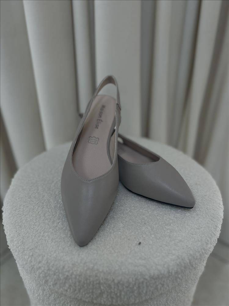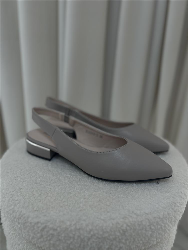 Topánky na rovnej podrážke s menším podpätkom a otvorenou pätou. Predná časť je špicatého tvaru.