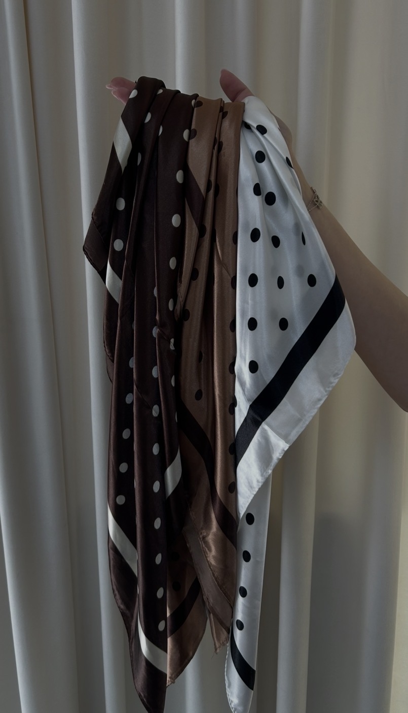 Saténová šatka s bodkámi, ktorá dotvorí a oživí tvoj outfit.