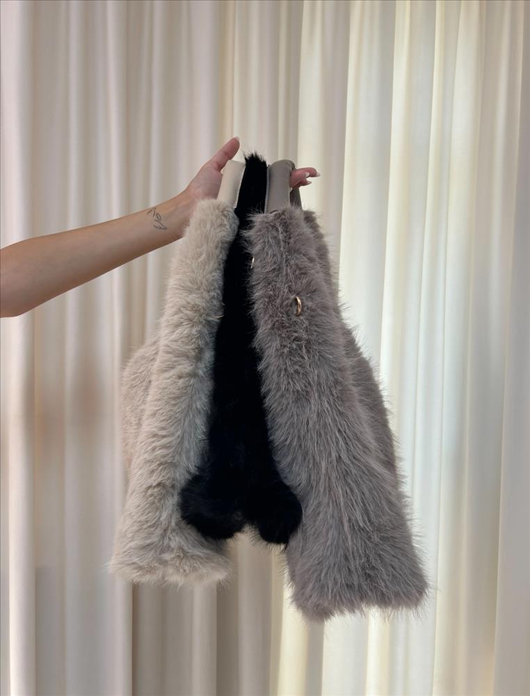 Kožušinová kabelka, ktorá Vás zaujme na prvý pohľad. Elegantný, oválny tvar kabelky zdobí kožušina, veľmi príjemná na dotyk. Vnútro kabelky je vďaka okrúhlemu pôdorysu dostatočne priestranné, s dvomi menšími vreckami po stranách. Uzatvárateľná je pomocou zipsom.
