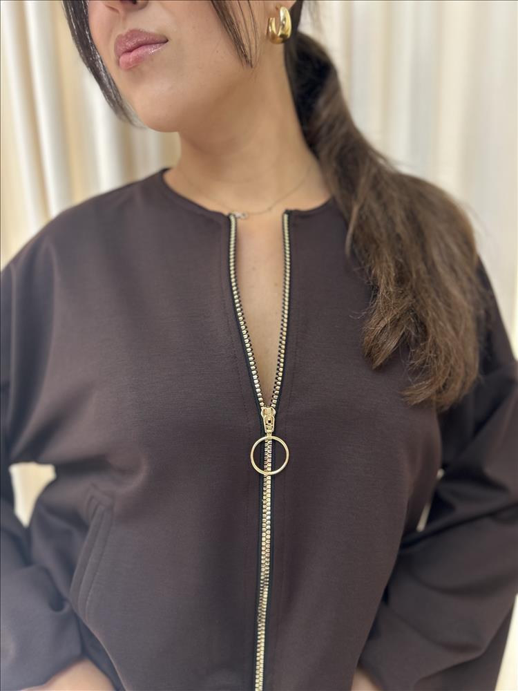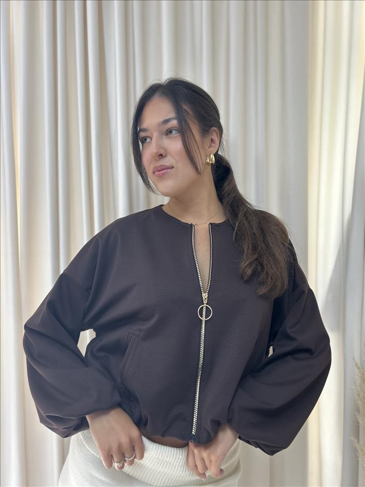 Štýlová bunda s balónovým nádychom a zlatým zipsom.