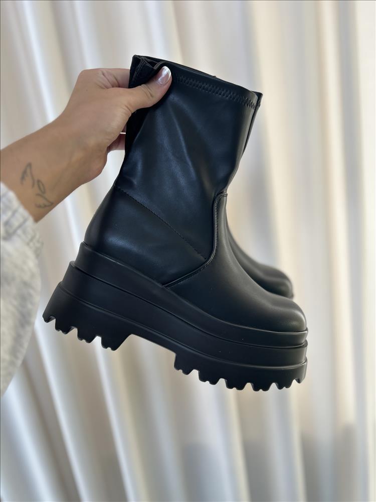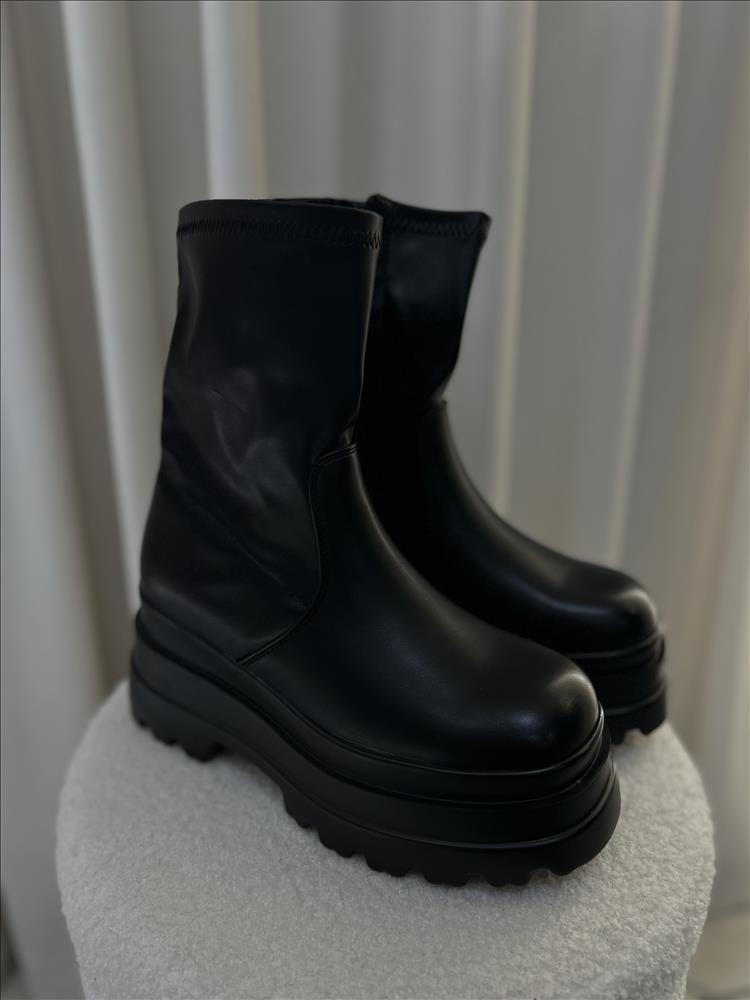 Nízke čižmy na cca 6cm platforme, zapínanie majú z boku na zips. Sú koženkové.