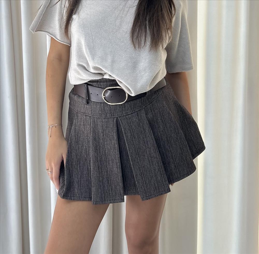 krátky, štýlový skort s hrubým opaskom, vysokým pásom.