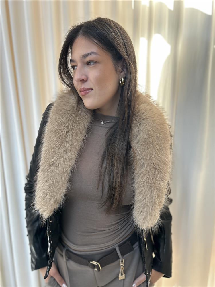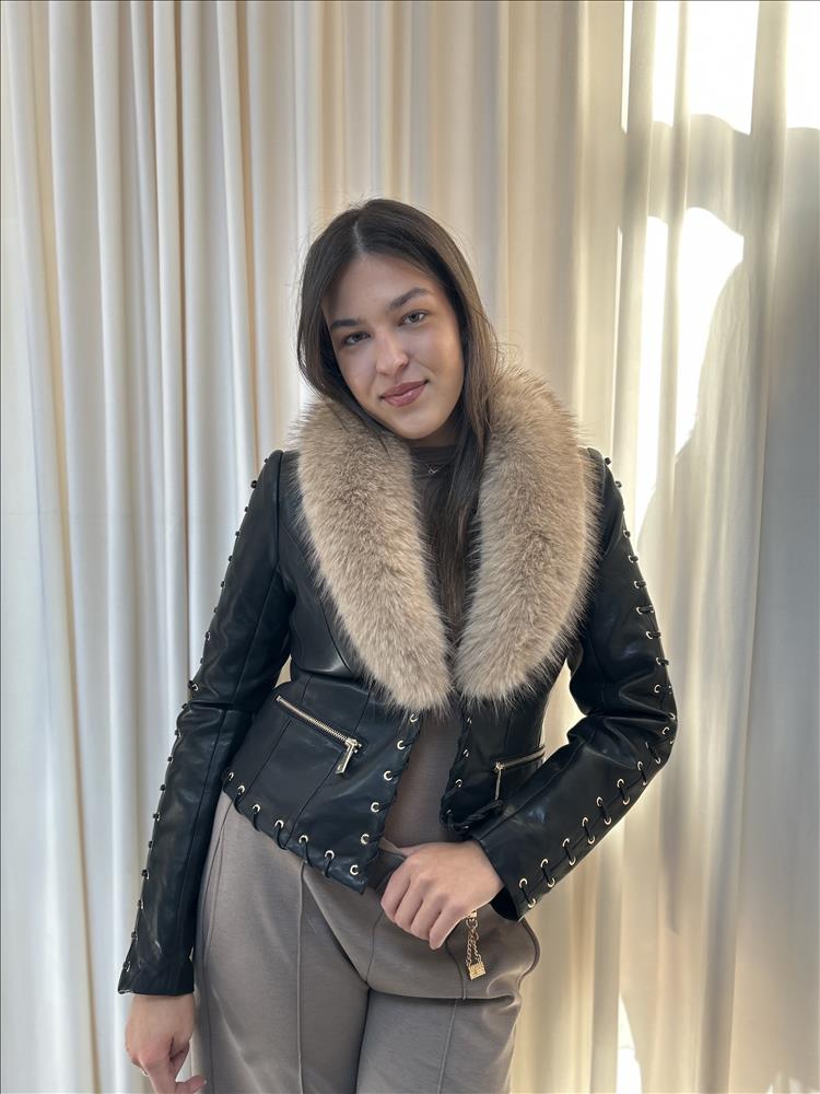 Koženková bunda s kožušinou, ktorá sa dá odpojiť. Bundička s rukávmi mal krásne detaily.