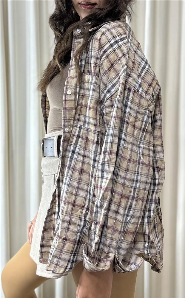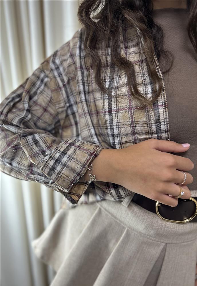 Štýlová károvaná košeľa s kamienkami. Kamienky jej pridávajú luxus a extravaganciu.