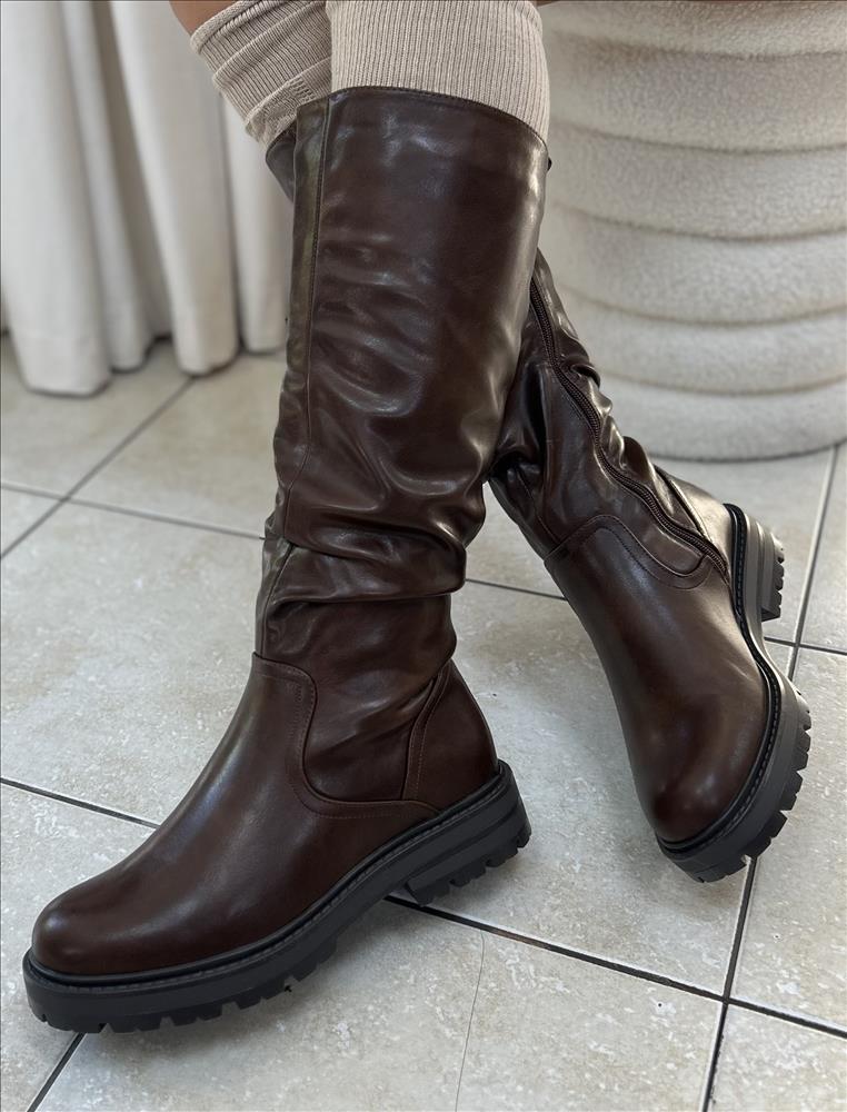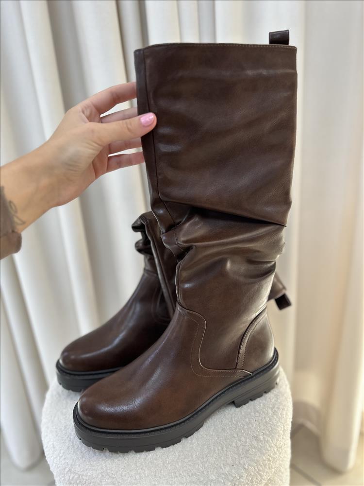 Štýlové hnedé čižmy v minimalistickom dizajne, ktoré kombinujú eleganciu a pohodlie. Vyrobené z kvalitnej hladkej kože s jemným leskom, vďaka čomu pôsobia luxusne a ľahko sa kombinujú s rôznymi outfitmi. Voľnejší strih v hornej časti dodáva topánkam moderný vzhľad a zároveň zaručuje pohodlné nosenie aj pri celodennom použití.