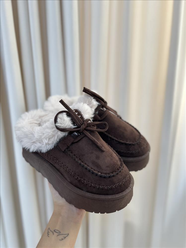 Čižmičkové papučky s kožušinkou sú veľmi pohodlné a štýlové, majú krásne detaily. Majú vyššiu platformu.