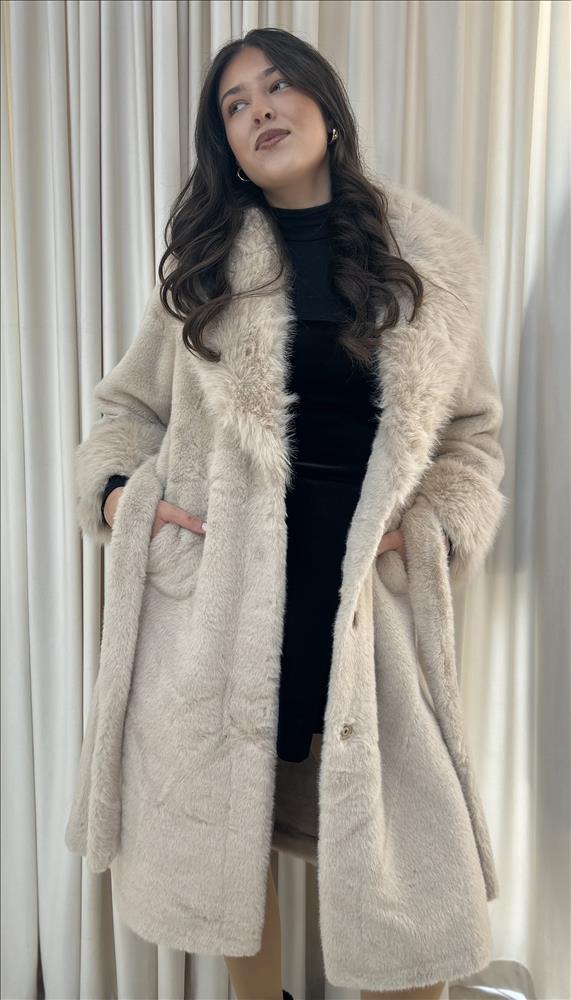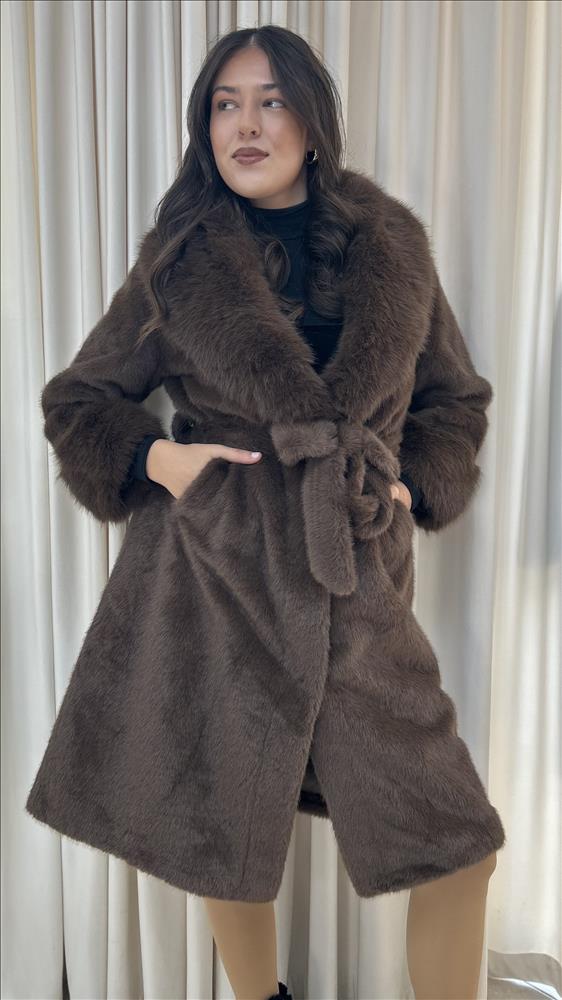 Elegantný a nadčasový kožuch z mäkučkej umelej kožušiny, ktorý dodá outfitu luxusný vzhľad. Má výrazný golier a manžety z hustej, hebkej kožušiny, ktoré pôsobia mimoriadne štýlovo. V páse sa viaže na opasok, vďaka čomu krásne zvýrazní postavu. Vnútro je jemne podšité pre maximálne pohodlie. Ideálny na chladné jesenné a zimné dni. Veľkosť UNI sedí od XS-L.