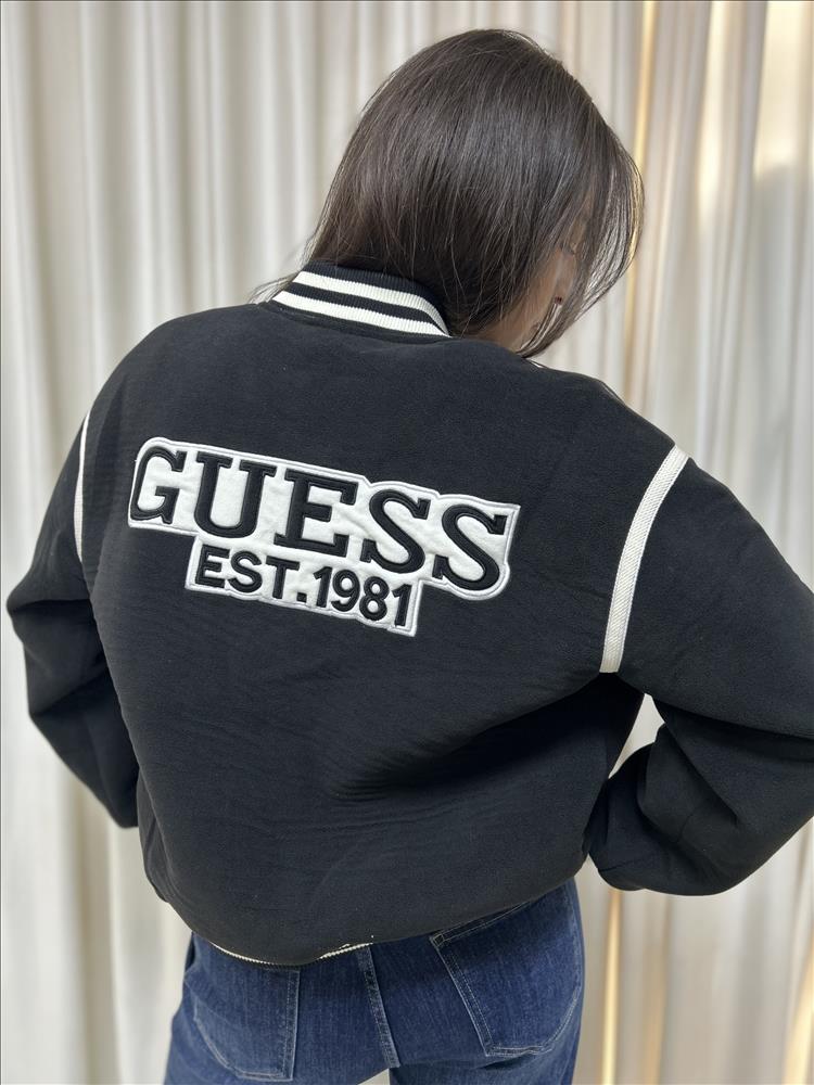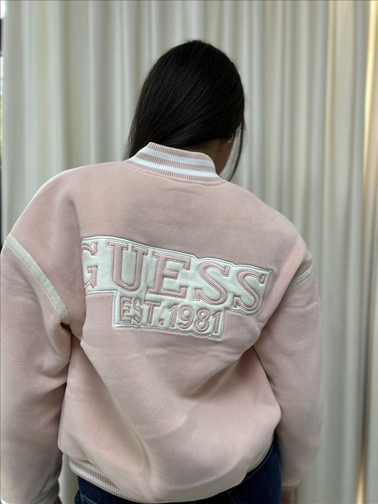 GUESS bombera v dvoch farbách. Je veľmi teplá a štýlová. Na zadnej časti má veľký nápis. Zapínanie je na cvoky.