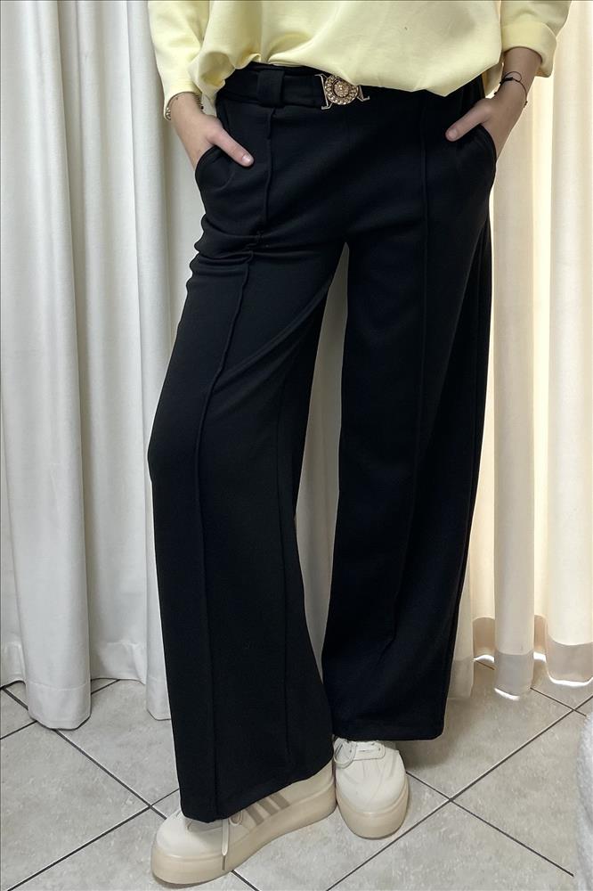 Tieto dámske nohavice sú ideálnou kombináciou elegancie a pohodlia. Majú rovný, mierne širší strih, ktorý opticky predlžuje nohy a pôsobí veľmi moderne. Predné záhyby (pukance) dodávajú nohaviciam upravený a sofistikovaný vzhľad. Model je doplnený o praktické bočné vrecká a zapínanie na zips s gombíkom. Materiál je príjemný na dotyk, dobre drží tvar a zabezpečuje komfort počas celého dňa. Nohavice sú vhodné do práce, na spoločenské príležitosti aj na bežné nosenie v kombinácii s teniskami či elegantnou obuvou.