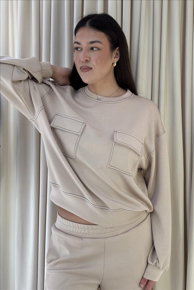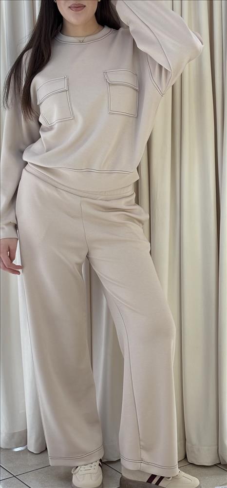 Štýlová dámska tepláková súprava je ideálnou voľbou pre pohodlný, no upravený vzhľad. Súpravu tvorí mikina s okrúhlym výstrihom a pohodlné nohavice s voľnejším strihom, ktoré spolu vytvárajú harmonický a nadčasový komplet. Nohavice disponujú elastickým pásom so sťahovacou šnúrkou, praktickými vreckami. Príjemný materiál zabezpečuje komfort počas celého dňa – či už doma, v meste alebo na cestách.