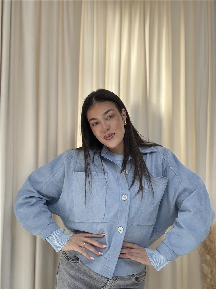 Štýlová krátka bundička je ideálnym kúskom na prechodné obdobie. Má voľnejší, mierne boxy strih, ktorý krásne sadne k nohaviciam s vysokým pásom aj k sukniam. Prednú časť dopĺňajú dve výrazné náprsné vrecká a zapínanie na väčšie kontrastné gombíky, ktoré dodávajú modelu moderný charakter. Jemný, na dotyk príjemný materiál pôsobí luxusne a zároveň pohodlne na každodenné nosenie. Klasický golier a dlhé rukávy z nej robia nadčasový kúsok, ktorý ľahko skombinujete do elegantného aj ležérneho outfitu.
