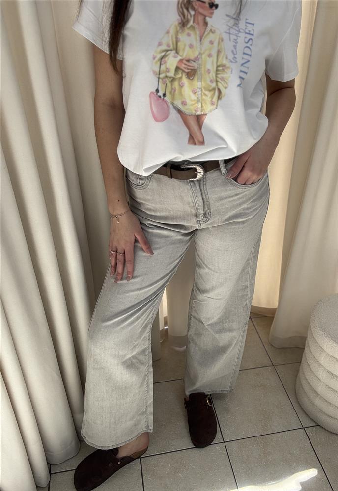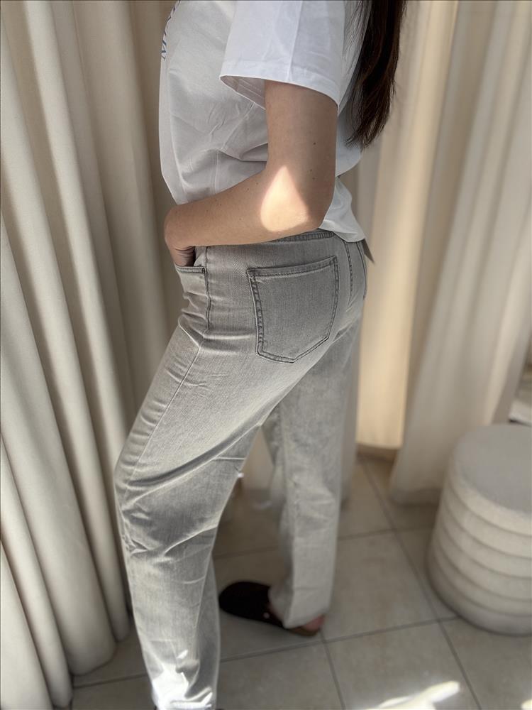 Štýlové dámske rifle v modernom sivom odtieni s jemným „washed“ efektom. Majú vysoký pás, ktorý krásne zvýrazní siluetu, a rovný, mierne rozšírený strih nohavíc pre pohodlné a nadčasové nosenie. Vyrobené z príjemného a pevného denimu, ktorý dobre drží tvar a zároveň poskytuje komfort počas celého dňa. Klasické zapínanie na zips a gombík, pútka na opasok a praktické vrecká dotvárajú ich univerzálny dizajn. Perfektne sa kombinujú s jednoduchým topom aj elegantnejšou blúzkou – ideálne na každodenné nosenie aj štýlové mestské outfity.