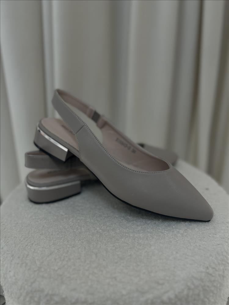 Topánky na rovnej podrážke s menším podpätkom a otvorenou pätou. Predná časť je špicatého tvaru.