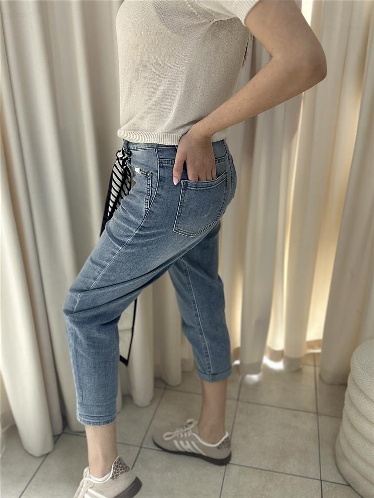 Štýlové dámske rifle, ktoré spájajú pohodlie a nadčasový dizajn. Majú regular strih v 7/8 dĺžke, vďaka čomu pôsobia vzdušne a elegantne zároveň. Svetlý, jemne vyšúchaný denim dodáva modelu ležérny charakter. Rifle majú klasický stredne vysoký pás so zapínaním na zips a gombík, doplnený pútkami na opasok a saténovou šatkou. Minimalistické prevedenie bez výrazných detailov umožňuje jednoduché kombinovanie s rôznymi outfitmi – od casual až po chic štýl.